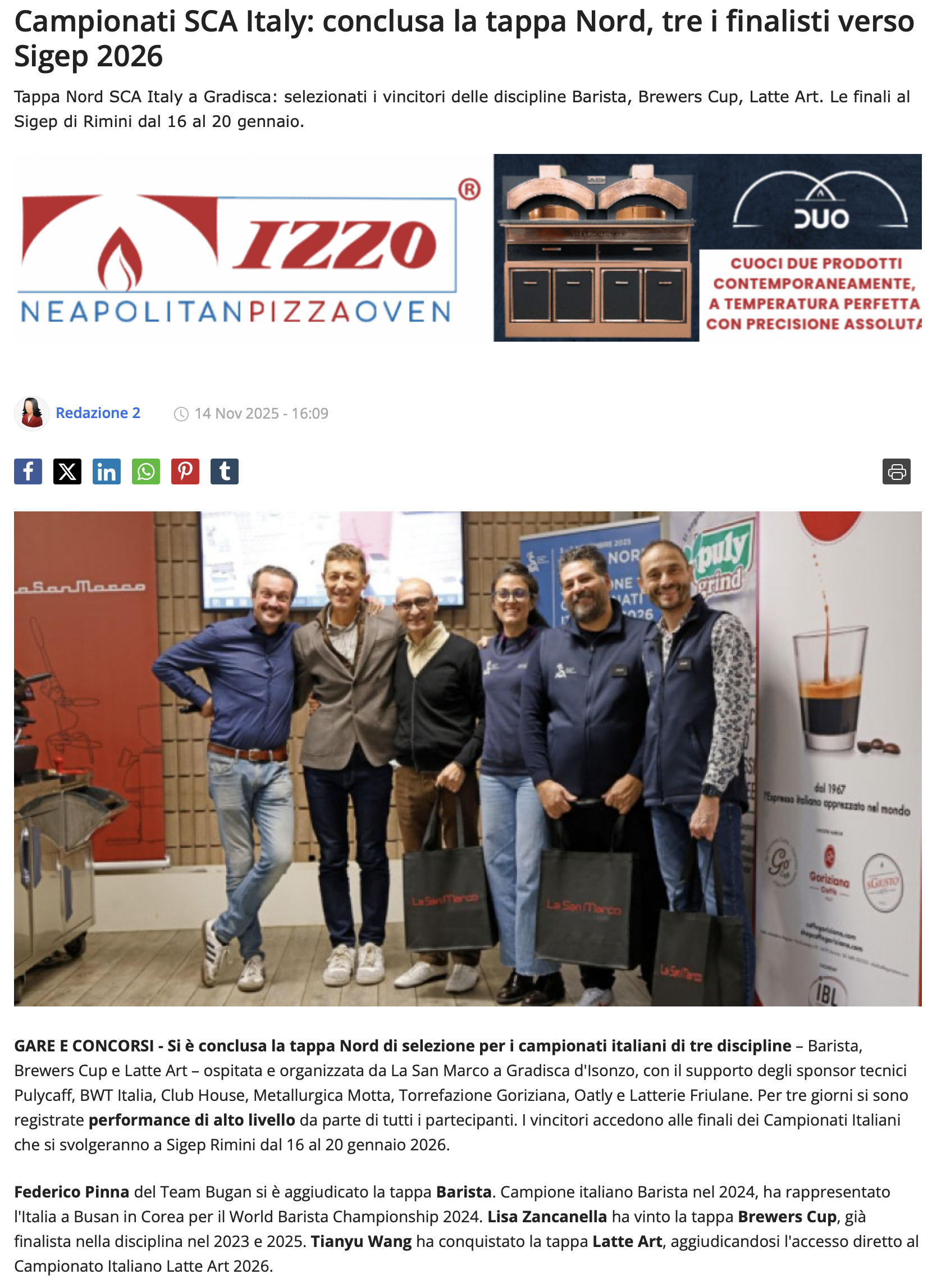 Via Padre e Figlio Venuti, 10 – 34072 – Gradisca D’isonzo (GO) – Italy Tel. (+39) 0481 967111 – Fax: (+39) 0481 960166 – Info@lasanmarco.com – lasanmarcospa@pec-mail.It – C.F. 00157550302 – P.Iva 00518180310 – Reg. Impr. Gorizia N. 00157550302 – Capitale Sociale EUR 7.000.000 i.v.